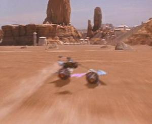 1:01:53 Sand people take pot shots at the racers. Heh.