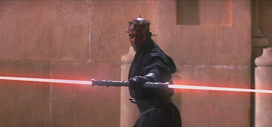 1:51:01 Double-bladed lightsaber. Fanboys everywhere wet themselves. Personally, I’ve always thought that the “Duel of the Fates” battle should have been left completely out of the advertisements for The Phantom Menace, at least initially. Studios already knew this was going to make money hand over fist and they already had the Tatooine battle to put in the trailers. With the internet still in its infancy, this reveal would have been a surprise to a lot of people and an amazing moment to witness in the theaters. It may have even blunted some of the initial negative press the movie got when it opened.
