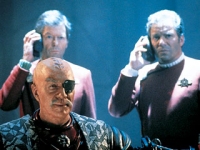 Okay. Since genetics and bad breath already ensure charming girls will always be a problem for me, I have no qualms admitting that not only do I love Star Trek, but Captain Kirk is one of my personal heroes. At first glance, Kirk might seem like your standard sci-fi hero, all big, bold, and brassy and always with a trump card up his sleeve. But if you watch the original series and the films, you’ll realize Kirk became over the years an incredibly complex and fleshed out character, who is driven by ideals and dreams while dealing with philosophical problems and concerns just like us civilians. It doesn’t hurt that Shatner’s very distinctive performance style makes Kirk an extremely unique dude. If you read Shatner’s Trek novels, especially The Ashes of Eden (which rivals Trek VI for best send-off of Kirk and crew), you’ll really get to see what an interesting and ultimately human hero Kirk is. But I could go on forever. My point is that Kirk is the coolest, and his friendship and comradery with Spock and McCoy is a huge part of what makes the original crew so great. And that’s part of the magic of Trek VI. Kirk and McCoy have some good times, Kirk and Spock have a rift but show that they ultimately are best friends, Spock and McCoy get to engage in a fascinating hobby, and all three get great lines and scenes. All the crew gets some good stuff, including Scotty’s assessment of who really committed the murder, Chekov and Uhura showing they’re some of the best officers a captain can have, and Sulu being a good captain for having served under the best.