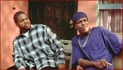 Maybe, but I’ll vouch that the images presented in Friday aren’t so far removed from my own daily existence. Director F. Gary Gray and star Ice Cube have called it their love letter to the ‘hood, showing how humor can exist amongst all the violence… but while I’m sure life in South Central and Compton is no picnic, those guys don’t know what it was like growing up on the mean streets of Princeton either. Word. Really, Craig (Cube) has it pretty good — fired on his day off for stealing boxes from work (maybe… the plot point is dropped, but a deleted scene suggests otherwise), he’s got nothing to do on Friday but hang out on the front porch all day with best friend Smokey (Chris Tucker), watching life and girls pass by. But things in the ‘hood aren’t all 40’s and reefer, as Smokey has the minor problem of having availed himself of all the product he was supposed to be selling for Big Worm (Faizon Love). Now the two have until 10:00 to acquire $200 or get shot, while also keeping neighborhood thug Deebo (Tiny “Zeus” Lister Jr.) from beating their asses. The odds that there’ll ever be a Saturday are not looking so good…