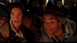they suck at both. Ridley has the pretty boy look going on, with a sort of Han Solo-lite outfit, while Snails — perhaps the DUMBEST name ever given to a character in a film — looks exactly as if the D&D wardrobe department thought that since he’s black, they should make him look like he stepped out of a