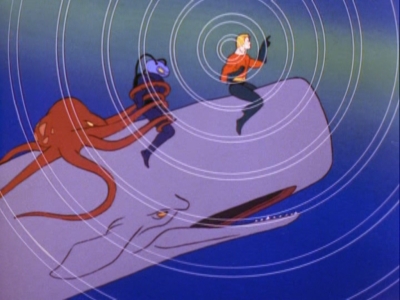 Aquaman, knowing that he’ll never be allowed to do anything cool for the entire series, overdoes it in the credits a tad: