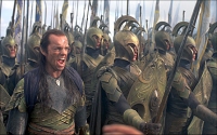 Another IMDb tidbit: Sean Bean starred in a UK TV series as a soldier during the Napoleonic wars by the name of Richard Sharpe. He subsequently appeared in a series of commercials where he would allude to his earlier role, saying things like, “Sharpe idea”. In this movie he continues the joke: after touching the Sword of Elendil he says, “Still Sharpe.”