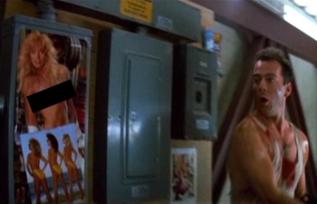 Even when on the run from terrorists, John McClane proves that a guy’s attention is always liable to be hijacked by random toplessness.  In this case, a centerfold spread in one of the maintenance corridors that catches his eye not once, but twice (the second time he gives a fond pat to the picture as he runs by).  Really, if the entire terrorist team were Swedish models, he would’ve lost the fight in six seconds flat.