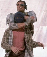 Here’s the plot, such as it is: Van Damme is Luc Deveraux, a soldier in Vietnam whose commanding officer Andrew Scott (played by Dolph Lundgren! Yay!) goes bughouse and starts making jewelry out of human body parts. Luc objects to this fashion gaffe, so they shoot each other to death. Then some army higher-ups come along and collect the bodies. Cut to the “near future,” which looks a lot like 1992, when these two and others have been brought back from the dead. Now they are an antiterrorist unit which goes around carrying bad first-person-shooter style cameras that harm their depth perception, but this does not matter, because they are dead. We are reminded of this by the fact that they get to sit around naked in a very cold room in between terrorist-fighting gigs. Being really cold allows reanimated dead guys to regenerate faster, because… Er… Look! More pectorals!