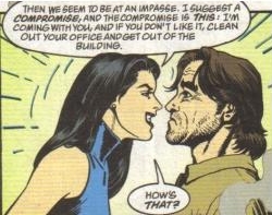 Perhaps the most intriguing character of all is deputy mayor Snow White, who has potential to be the strongest female movie heroine since Ripley. Great examples abound, including putting down an armed rebellion (ever seen Mr. Toad with an Uzi?) using nothing but a dragon and a few choice words. “You dumb bastards! I’m Snow White! I run Fabletown and I’m never outgunned!” Nor is she alone- the nice thing about an ensemble book is that as characters die or lose prominence, others come to the forefront. As a result, Cinderella, Frau Tottenkinder, and Beauty have all come into their own as women of incredible cunning and fortitude.