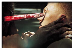 However, I’d be remiss in not mentioning the one other thing in this film’s favour before ending this review. This film, as well as being darn good on its own merits, has earned a special place in my heart for establishing a new cinematic record: ‘The Longest Set-up For A One-Line Joke (Which Is Really Funny) In Cinema History.’ Showing the kind of mutant dedication Justin demands from his staff (backed up by the threat of a week locked in the Mutant Office’s cupboard with only a copy of Battlefield Earth for company), I’ve meticulously timed this joke – there’s precisely 96 minutes between the set-up and the punchline. Whoa.