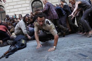 This meandering introduction brings us to both the unfamiliar and completely familiar, then — AMC’s The Walking Dead. While zombie movies are nothing new (and haven’t been for decades), nobody’s had the guts to do an actual TV series about the undead. Vampires, yes; zombies, no. This is partially because of the very graphic subject matter, and partially because zombie flicks are traditionally elimination movies: to be an effective threat, zombies have to kill a cast member now and then.