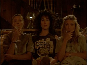 What happens: Our three female protagonists have had enough. They’re tired of single life in the sleepy town of Eastwick, with the sole bright spots in their lives being their weekly gal-pal get-togethers. They need a man in their lives – all three of them do. And so, as a storm rages outside, they start talking about what sort of a man they’d like.