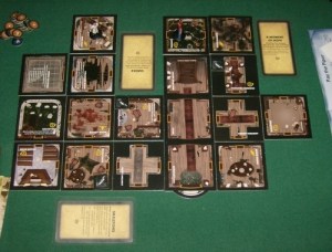 I’ve run BaHotH at two cons, and both times it had an interesting conclusion. At MarsCon 2011, the haunt was the one where the traitor has to get to the Pentagram Chamber and perform a summoning ritual, while the survivors have to kill him before he gets there or (failing that) kills all the rats which have appeared. The very first round, one of the survivors moves to the room where the traitor is and makes a spectacular combat roll, garnering himself a one-shot kill. At RavenCon 2011, it wasn’t quite so anti-climatic. The haunt this time was a zombie uprising. The player who was designated as traitor had played before and apparently loves being the traitor (a bad sign for the survivors). He had his zombies congregate together and expertly picked the survivors off one by one.