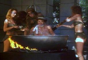One of the movies I made a point of bringing up, however, was Cannibal Women in the Avocado Jungle of Death. Cannibal Women is a movie that almost screams for attention from Mutant Reviewers: a hilariously tongue-in-cheek premise, wonderfully layered humor that runs from broad slapstick to clever satire, and a cast that’s filled to the brim with beautiful women wearing very, very little. It follows a brilliantly absurd story about a leading professor of Modern Feminist Studies and her student assistant, who venture into the wild jungle of Southern California’s avocado belt at the behest of the government to locate Dr. Kurtz, a colleague gone missing while observing a group of radical feminist cannibals known as the Piranha Women.
