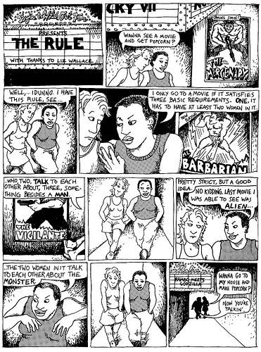 Most recently, I stumbled on a blog about a movie “law” that I had never heard of: The Bechdel Test. Named for Alison Bechdel, who first published it in 1985 as a part of her influential LBGT comic series, “Dykes to Watch Out For,” The Bechdel Test is a simple measurement of a film’s active female presence.