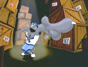Bull that pales in comparison to the aforementioned rap number that starts when a dog chases off a couple of pets that just entered the room half a second ago and decided to eat a mouse. The mouse then says one of the best lines in the history of terrible movie dialogue, which sends his rescuer into a rapileptic seizure, making sounds as if he’s barfing and laughing at the same time.