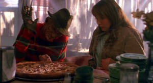1. I was about 9 when this came out and even by this point, it was more black comedy than horror. Freddy didn’t scare nine year old me and my 13 year old sister was laughing at the talking meatball. It became a joke whenever we had pizza after that. So to answer your question, no, it didn’t scare us back then. Freddy was the pop culture hero we cheered for like in New Nightmare.