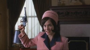 Ergo, we get The House Of Yes — a film version of a play (which means four sets and lots of dialogue). In a nutshell, you have normal brother A with normal girlfriend B, but sister C is in love with brother A and slept with him quite a bit when A and C were growing up. A left, C tried to shoot him, A and B come back, other brother D falls for girlfriend B, and there’s domineering mother E. What an opportunity for humor!