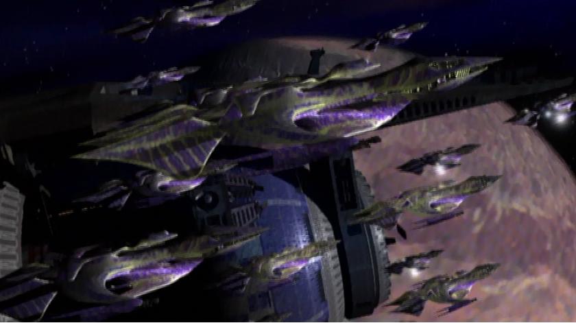 Now *this* felt like the Babylon 5 I remember! Movements of Fire and Shadow finds a surprisingly on-the-ball Garibaldi coordinating the war effort from B5, but he’s essentially operating on his own as our cast has spread out across the galaxy, each in their own special kind of trouble. G’Kar remains imprisoned in the Royal Palace while Londo struggles vainly to mount an opposition to the regent. Lyta and Dr. Franklin visit the Drazi Homeworld at the behest of Vir Cotto to try and claim Centauri bodies only to discover that there are no bodies to recover (and Lyta got hardcore! Holy Crap!). Delenn rushes home to Minbar to try and push through the creation of a new type of White Star but is intercepted by warships and blown nearly to hell. Lastly, of course, is President John, in direct control of the fleet (woo!) and on his way to intercept the Drazi and the Narn, who are hellbent on bombing Centauri Prime back into the Stone Age.