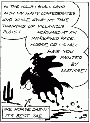 Admittedly, there are a few elements to the strip that could be taken as a tad un-PC these days – the secondary villain of Chief Toffy Teeth, for instance, might raise a few eyebrows amongst the Native American community. But there’s nothing actively malicious, and it’s all playing off the typical cowboys-and-indians set-up anyway, so I doubt that it would really do more than ruffle a few feathers.