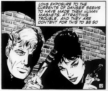 Now strip away all the over-the-top gadgetry (not that I’ve got anything against the gadgets, mind you) and replace it with deadly fighting skills and a lifetime of surviving by her wits. In place of Bond’s endless array of replaceable beauties, give her a deep platonic friendship with a man who is just as skilled at kicking ass as she is. Finally, replace Bond’s employment by MI6 with a position as a freelance independent who gets into all sorts of fixes that have nothing to do with her job. Mix in a trace of mysterious exoticism, a dry sense of humor and an all-around competence in just about every regard, and you’ve got Modesty Blaise.