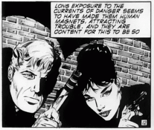 What sets it apart, what makes it truly worth reading, are two things. First, there’s the everyone’s-an-animal aspect. This kinda sounds like a silly gimmick, I know, but it really works surprisingly well. To paraphrase Jim Steranko (who wrote the introduction for the collected edition), these are not animals that act like people, they’re people that happen to look like animals – something that is used as a sort of visual shorthand to quickly delineate their basic nature. So basically, we’re dealing with the same sort of Noir character types we’re all familiar with – the corrupt businessman, the gruff-but-honest cop, the world-weary P.I – except they’re animals. It really gives new life to an old genre, and makes us look at things in a different way.