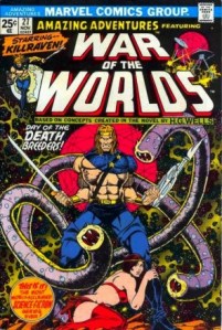 In another, somewhat different possible future, the Martians landed and were killed off by germs – once, back in the Victorian era. Now, centuries later, they have returned with fresh defenses against such things, and conquered the planet, reducing the human population to mere foodstuffs and toys for their amusement. But one such ‘toy’ refuses to be played with – Jonathan Raven, a man raised for the gladiatorial pits. Seizing a chance of escape, he breaks out, and now leads a group of rebels in a journey across the ravaged landscape of North America, searching for freedom and a chance to overturn his Martian oppressors. His skills honed in the fires of combat, he goes by the name his captors gave him – Killraven!