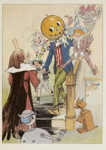 Really, though, a John Carter in Oz story is not quite the insanity that you might expect. Oz is, of course, a much gentler place than Carter’s warlike Mars, but if you’re picturing the hoppity-skippety-down-the-yellow-brick-road MGM version, you are way off-track. Oz may not be a violent setting, per se, but it has plenty of dark and unexplored corners – in fact, one of the central plot hooks is that virtually every time someone wanders off the beaten track, they discover something new. Ol’ Johnny-boy might not fit in at first, but there’d be plenty of work for a guy with a sword, believe me. Perhaps he’d go on border patrol along the edges of the Deadly Desert. Or maybe he could be Dorothy’s bodyguard, or be asked to fill in while the Soldier with the Green Whiskers was on vacation, or… something? I dunno.