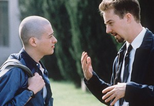 • Edward Norton was said to have re-edited the film to lengthen his screen time. Director Tony Kaye then attempted to get his name removed but violated a Directors’ Guild of America rule that states that directors that use pseudonyms (such as “Alan Smithee”) must not talk about why they had their name removed — which Tony Kaye had done in ads in Variety. Kaye sued the DGA and New Line Cinema for $200 million stating that the DGA rule violated his first amendment rights.