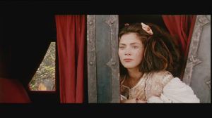::SPOILERS:: Chronologically, Bathory follows the life and career of Erszebet from her childhood betrothal to Ferenc Nadasdy (great general but a bit brutal as a husband) to her death in prison, having been found guilty of the unnatural murder of young women. We learn that she is not a vampire, but has a raging temper and sense of entitlement, an interest in bodies, a two-pronged dagger which leaves peculiar marks, a possible blood disease rendering her pale, and a tendency to bath in red water, a certifiable witch as an advisor, and unfortunate timing. Really, she was laying herself open to accusation. She has an affair with Caravaggio, who is a present from her husband Ferenc (“Oh darling, I always wanted one!”) and paints her with her children. Two comical priests are sent by the Catholics to spy on her, but they become convinced of her innocence. After her husband’s death his lieutentant, Thurzo, turns against her and allies himself with her sons-in-law to frame her and take her land. Finally, Erszebet does go a bit mad. It’s all those mushrooms prescribed for her by her witch. The story is quite compelling as a Duchess of Malfi-style misogynist thriller.