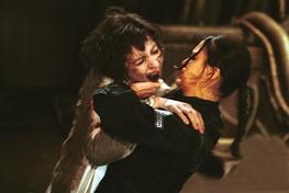 See, in most horror films, the soundtrack gets all loud and blarey when bad stuff happens, but it’s usually just noise. In Resident Evil, director Paul Anderson throws in some heavy industrial techno rock riffs that really play havoc with your body. On one hand, scary stuff is going down, and you keep thinking, “What would it be like to be eaten alive by ten zombies all at once?” But on the other hand, the score is so pumping that you want to start doing push-ups or something, preparing to join the army right after the film ends. You don’t know whether to be scared or thrilled, so you end up twitching a lot. It’s fun!