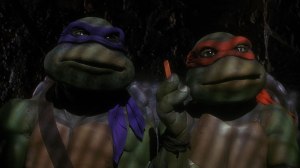 Michaelangelo: [Watching a “Tortoise and the Hare” cartoon on TV] You believe this guy? Come on, Ninja kick the damn rabbit! Do something!