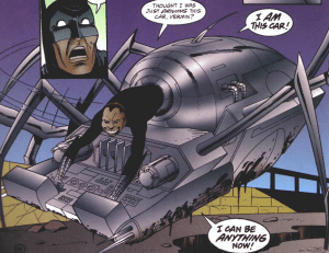 Now there is a concept that is directly applicable towards a filmic adaptation. For every action there is an equal and opposite reaction, and Killer Moth is criminality’s reaction to Batman. There is drama in that, as long as you play him as a genuine threat – the whole without-me-would-these-villains-exist thing is a bit worn-down at this point, true, but it still has enough pep to work in a film, especially when the villain himself states that yeah, Batman is the whole reason why he’s doing what he’s doing. Just tone down the costume a bit, but not too much – keep him colorful; that way he’s even more of an equal-but-opposite type. It works for the Joker, it can work for him. Do it right, treat him seriously, and Killer Moth could be redeemed at last.