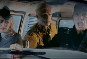 On the villainous side – well, all the other Nazis are basically the villains, of course, but if you had to single out one as the bad guy, it’d be Adler. He is a typical Nazi, a power-hungry, xenophobic militarist who glories in the thought of wiping out the “lower races” from the face of the Earth (although, of course, he’s diplomatically refraining from telling his girlfriend this), and as such, he’s not terribly interesting. Sure, Götz Otto does a good job with the character, making him memorably brutal and short-tempered, and he’s perhaps a bit more directly fanatical than some of his colleagues, but basically he’s an Evil Nazi Villain straight out of the Hollywood playbook – there’s not really much that stands out about him. The same could be said for his superior, Kortzfleish, who is somewhat more intimidating (probably because Udo Kier is a much more experienced actor), but he doesn’t really show up often enough to have much of a presence. The most interesting character trait he has is being annoyed when his subordinates salute him with ‘Heil Hitler’ (who, of course, is no longer a factor) instead of ‘Heil Kortzfleisch’ – but that’s more of a running gag than anything else.