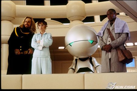 If you just want some fun sci-fi times, though, with a good-natured feel and no real prerequisite of scientific knowledge or even intense imagination on your part, check out this movie. It’ll certainly help if you’re inclined to find British-isms humorous, and you’ll be a lot better off if you have a healthy appreciation for science fiction and “zaniness.” I also think the less hands-on knowledge of Adams’ book, the better (strange but true). That way, you’ll just want a funny and witty film and not some end-all-be-all “put in every little bit of genius dialogue and observation!” Adams adaptation. *Whew!*