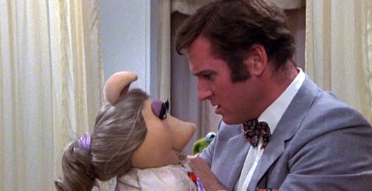 They get lodgings at the Happiness Hotel, a shabby dump full of Muppet regulars (“So if you don’t mind friendly animals and can learn to stand the smell Well, welcome home, to the Happiness Hotel”). Then after a comedic misunderstanding, Kermit meets Miss Piggy who he assumes is Lady Holiday and she lets him so she can score a date. Enter the Lady’s mooch brother Nicky (Charles Grodin), a goofy man child who we’re told right away is the villain. Along with his three accomplices, criminals/models Marla, Carla, and Darla, he’s the thief, and he’s hopelessly in love with Miss Piggy to boot!