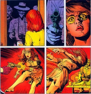 I would argue that the Joker’s status as “dangerous and unpredictable psychopath” had been cemented long before ‘The Killing Joke’ – not counting his early Golden Age appearances, where he was very much the cold-blooded (if not necessarily insane) killer, ‘The Joker’s Five-Way Revenge’ is generally considered (and I agree) to be the one that truly set him in stone as a psycho, and that was in ’73, a good fifteen years before TKJ – not to mention a number of other great ‘crazy Joker’ stories in the interim, such as the classic ‘The Laughing Fish’. Killing Joke is definitely one of the definitive Joker tales, but it didn’t really set in place anything about his basic character that wasn’t already there, save for giving him an origin story of sorts.