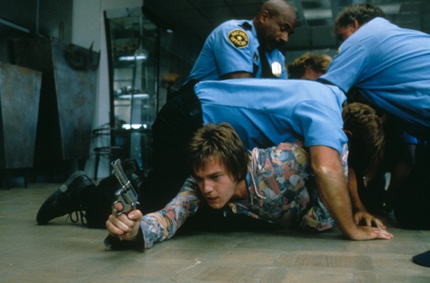 When day-dreamer Robert (Ewan McGregor) is replaced by a janitorial robot, he storms into his boss’ office and ends up taking the boss’ daughter Celine (Cameron Diaz) hostage. This is served up with a twist (as is most of the film), since Celine actually helps Robert kidnap her. There follows a series of escapades with Robert and Celine that include atypical kidnapper/nappee talk, a karaoke bar (Diaz’ contract specifies that one must be in every film she makes), and a Bonny and Clyde-type bank robbery. During all of this the angels decide the best way to get them together is to kill them. Confused?