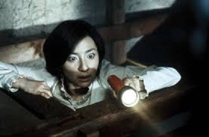 The film is about a house, and some dead people who occupy that house, and what happens to everyone who encounters said house and said deceased persons. That’s where the resemblance to the traditional Western notion of haunted house horror ends. The haunted residence is smallish, light, and airy, a nice condolike building with big windows and lovely wood floors. The film starts with an aide worker visiting to help care for the mother of the current residents, a nice young couple who seem unlikely to have created the cluttered mess the aide worker finds. The old lady spends a lot of time staring off into space and making creepy, cryptic remarks, because she knows she is in a horror film and being a sweet, happy old person is not one of her options. Then she is frightened to death by a black-haired creature which also scares the aide worker into a state of coma. The young couple start seeing little boys in white makeup, and we’re off to the races.*