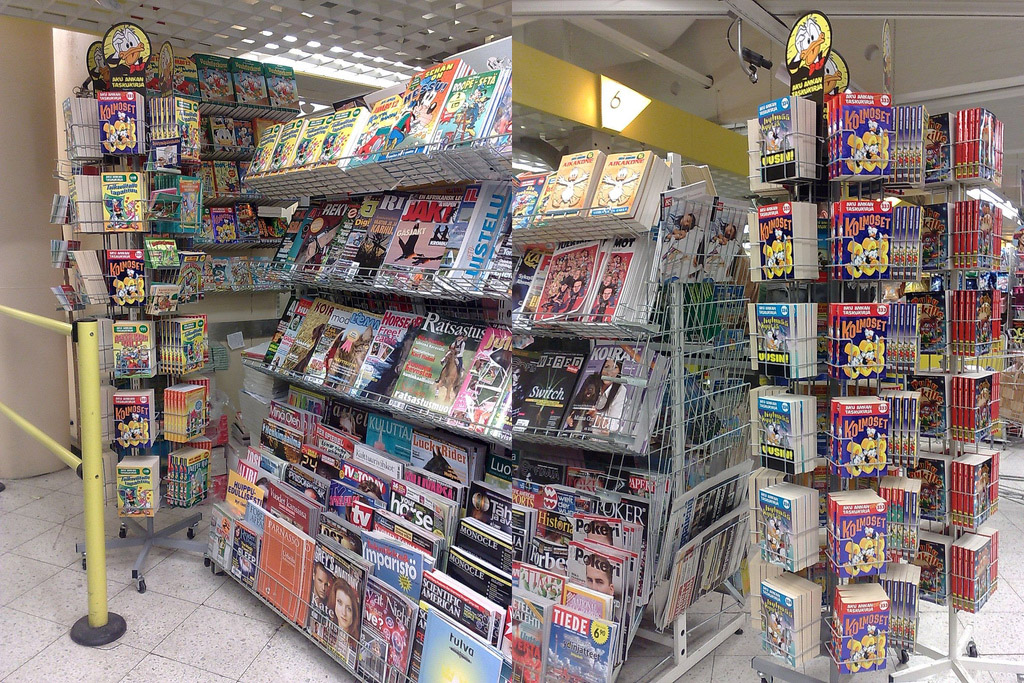 Exhibit A - two different magazine racks in, if I recall correctly, Sweden. Note the prominent Donald Duck placement.