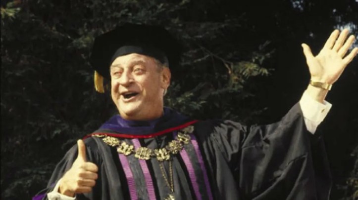 Justin’s Review: I’ll confess: I really don’t like Rodney Dangerfield. I never have. He irked me in Caddyshack as a slob who wasn’t a “yeah, you’re pretty cool for a slob” type, but more of a drunken uncle who you really wish you could disown, especially at family gatherings. It’s not that I hate the guy himself, it’s just that when you don’t find a comedian’s particular schtick funny, that pretty much washes out anything he or she does. Kathy Griffin, too. And Sam Kinison (who’s unfortunately also in this movie).