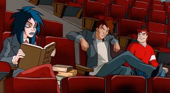As this series opens, it’s an unspecified number of years after the Ghosbusters have disbanded (again), and Egon is left teaching an unpopular class at college. Only a handful of college students show up, including Goth Girl (Kylie), Soul Patch (Eduardo), Geeky Whiz (Roland), and Wheelchair Jock (Garrett), mostly looking for answers or an easy A.