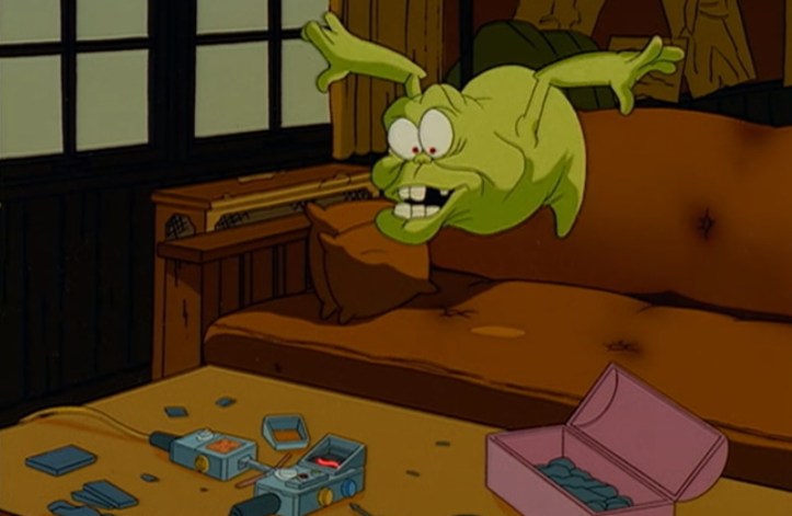 It’s enough to wake up Slimer, the third character to make the jump to the new series. Slimer was… well, he was a divisive character among the cartoon fan community, let’s just say that. I think he’s fine in moderation but got annoying when the corporate suits demanded that he got headlining status in the later seasons of The Real Ghosbusters. Er, sorry, Slimer and the Real Ghostbusters.