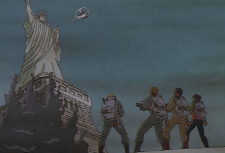 Since the entity is heading toward the city, the eight Ghostbusters fly out to Liberty Island to put themselves between it and several million people. Long story short, the guys in grey can’t stop it… and the thing eats the Statue of Liberty. It also consumes the Twin Towers which is really unsettling in retrospect.