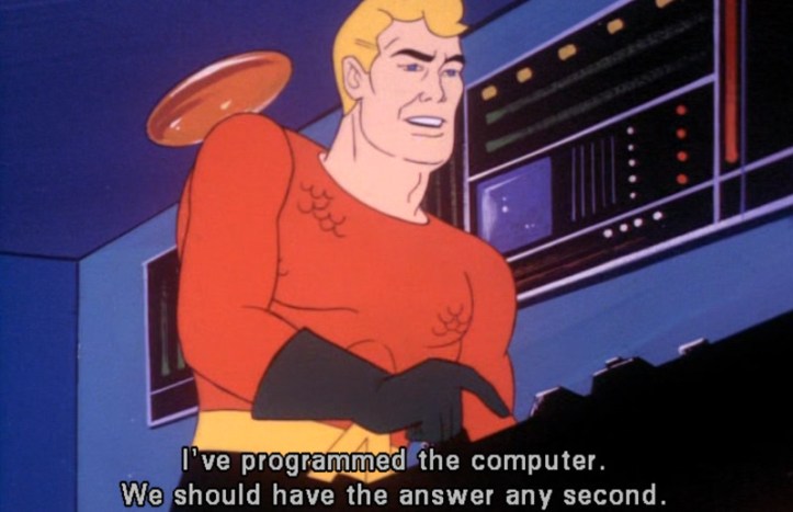 Hey, you know who would have been helpful in the battle against the water monster in New York harbor? Certainly not Aquaman, who was needed to man the computer back at the Hall of Justice. How would the Superfriends know what to do if this computer didn’t do their thinking for them?