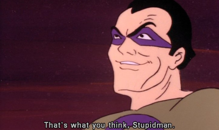 The bad guys take off with the United Nations and Riddler calls with some cryptic clue about where to go to get them back. I seriously would make a generous donation to the Superfriends if Hawkman would have muttered, “No thanks, you guys can keep them.”