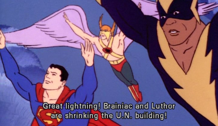 Anyway, Brainiac shrinks the UN building, which makes me wonder if that shrink ray works on lava monsters. Because if so… you see where I’m going with this? No need to get the Superfriends involved is all I’m saying.