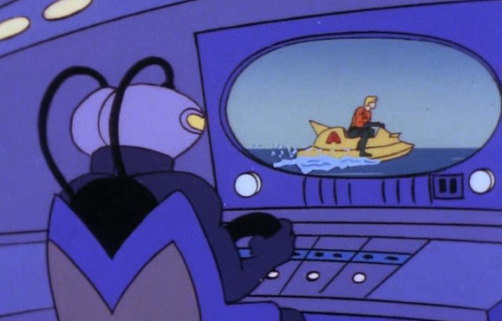 After the commercial break, Aquaman tells the Superfriends that the wave didn’t just wash over some small island — as the episode painstakingly showed earlier — but “all of the coastlines in the western hemisphere.” All of them. By waves caused from fishies. If I keep slamming my head onto the desk this hard, I’m going to have a dent that I can’t easily explain to my family.