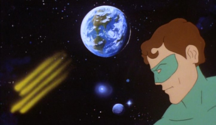 Major spoilers here, but we don’t get to see the invasion after all. The Fearians jet back to earth at the news that the Superfriends escaped, turn off the bubble to actually help them escape, and a battle ensues. On the side of the Fearians is a “neutron eraser,” which isn’t as intimidating when you realize that it’s just one of a pair of erasers filled with chalk dust. On the side of the Superfriends is a guy who can shoot lightning from his fingertips and another guy who can make a green rocket ship to take the invaders home. That would have been nice to see the first time the Fearians showed up, but better late than never.