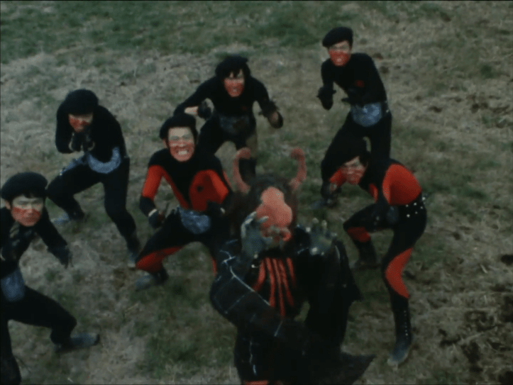 At the end of it all, Dr. Midorikawa is choked by the Spider Man’s webbing which Ruriko thinks is Hongo’s doing, and then the Spider Man tries to make away with Ruriko but ends up being chased down and beaten by our heroic Kamen Rider through the delightful magic of insane jump cuts, random set pieces, and costumes that just barely keep it together — at one point the Spider Man’s cape thing just sort of falls off.