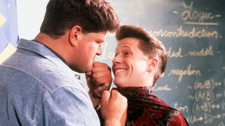 Part of it comes from personal history and taste: at the time Parker Lewis launched, I too was in high school, which made this a rare conjoining of TV virtuality and my personal reality. I grew up loving the “kids reign supreme over dummy adults” genre, especially in school settings. I would’ve killed for friends like Parker or Mikey or even Jerry during those lonely years of my life, so watching them in action was the next best thing.
