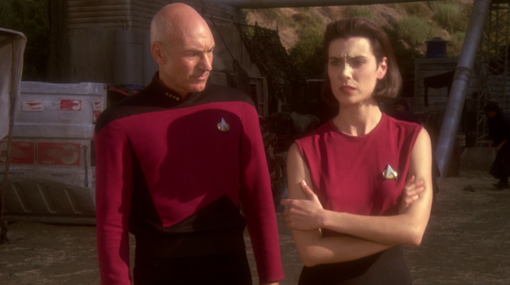 “Darmok” and “The Inner Light” were not just examples of good Star Trek, but fine pieces of television storytelling, period. How do you communicate with a race of aliens when your translator doesn’t work? What if you could live someone else’s entire life in the span of a few minutes? Questions like these hooked the viewers into staying with the show. Other cool episodes included “Disaster” (a ship-wide disaster fragments the crew into pockets of survivors), “Conundrum” (the crew forgets who they are in the middle of a battle), and “Cause and Effect” (your standard causality time loop tale).
