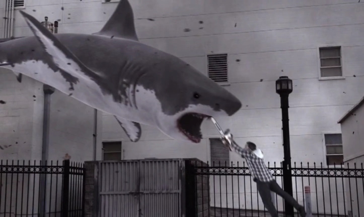 What I found here is the polar opposite of subtlety and artistic filmmaking. Rather, it’s a silly exercise in trying to figure out any way possible to have sharks show up anywhere, at any time. These aren’t just your average sharks; these are telemarketers given sharp teeth and the phone book to an entire area code. They fly, they swim, they jump, and they kill the second they sense that the camera is on them. They’re also made of very bad CGI that doesn’t stand up to more than a single second of scrutiny, which is why any given shot of a shark in this movie is 0.9 seconds long.